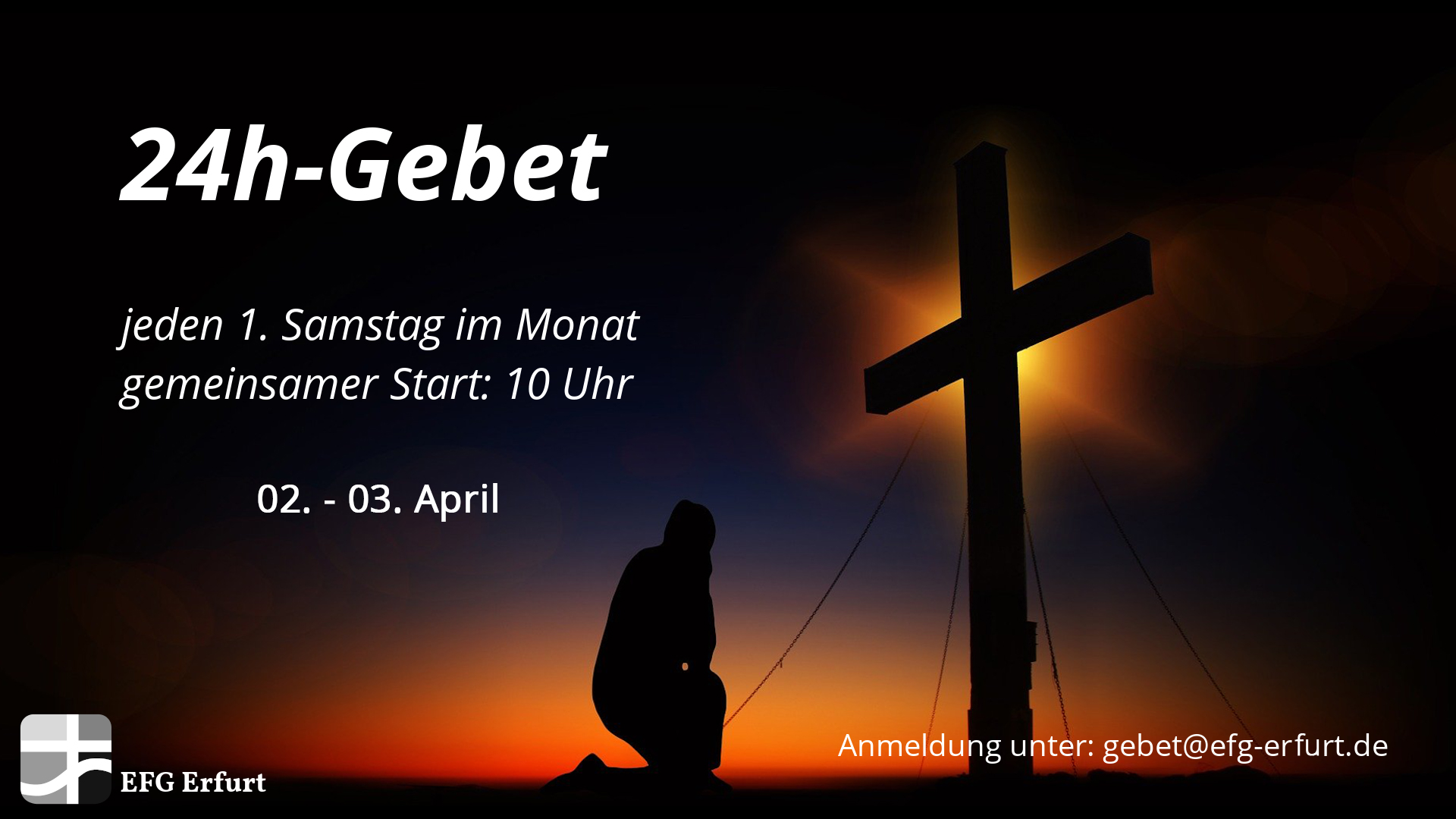 Wenn du dabei sein möchtest, melde dich per Mail an gebet@efg-erfurt.de. Gern kannst du uns so auch dein Anliegen weitergeben.